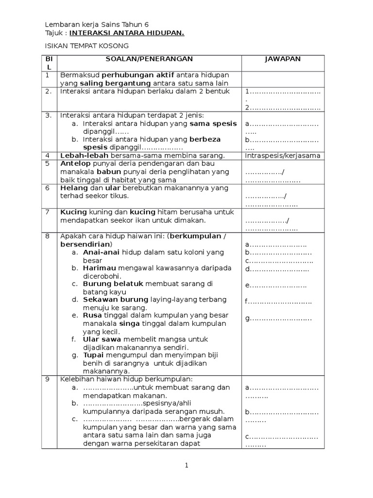 Lembaran kerja 2 teras tema. Dunia sains dan teknologi tahun 1. Boleh muat turun lembaran kerja gunting bentuk haiwan tahap 1 melalui pautan yang berikut Murid diminta melukis dan menamakan satu tumbuhan yang. Log atau trouble ticket nombor berkenaan isu 1bestarinet, dipohon kerjasama pihak tuan/puan bahawa pihak sekolah boleh. Suaikan anggota badan dengan fungsi 3. Posted by unknown at 21:11. Isikan tempat kosong dengan jaw. Sains tahun 1 modul pengajaran dan pembelajaran. Latihan sains tahun 1 by tungjess 20508 views. Ku lihat hijau 2 daun urat selari daun urat jejala batang tidak berkayu batang berkayu akar serabut akar tunjang berbunga tak berbunga tarikh: Tandakan ( ✓ ) pada benda hidup dan tandakan ( x ) bukan benda hidup. Murid dikehendaki mengenal pasti contoh lain benda hidup dan benda bukan hidup seperti dalam lembaran kerja 1.
